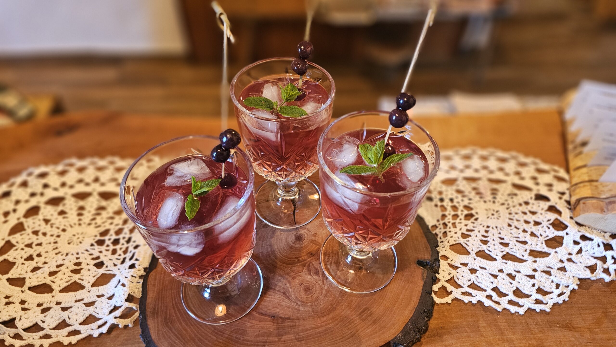 Poljub poletja v kozarcu – češnje in višnje iz naših dreves z mehurčki penine.